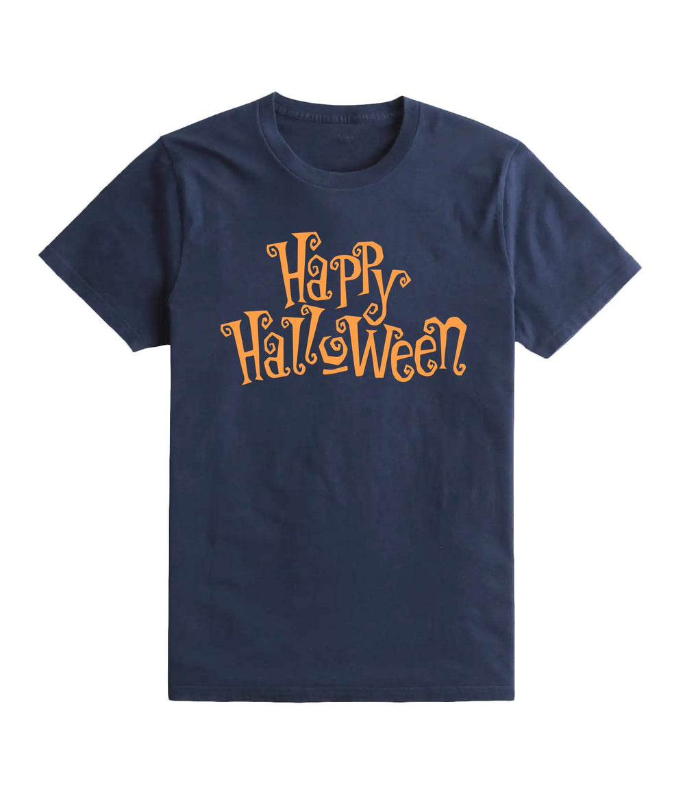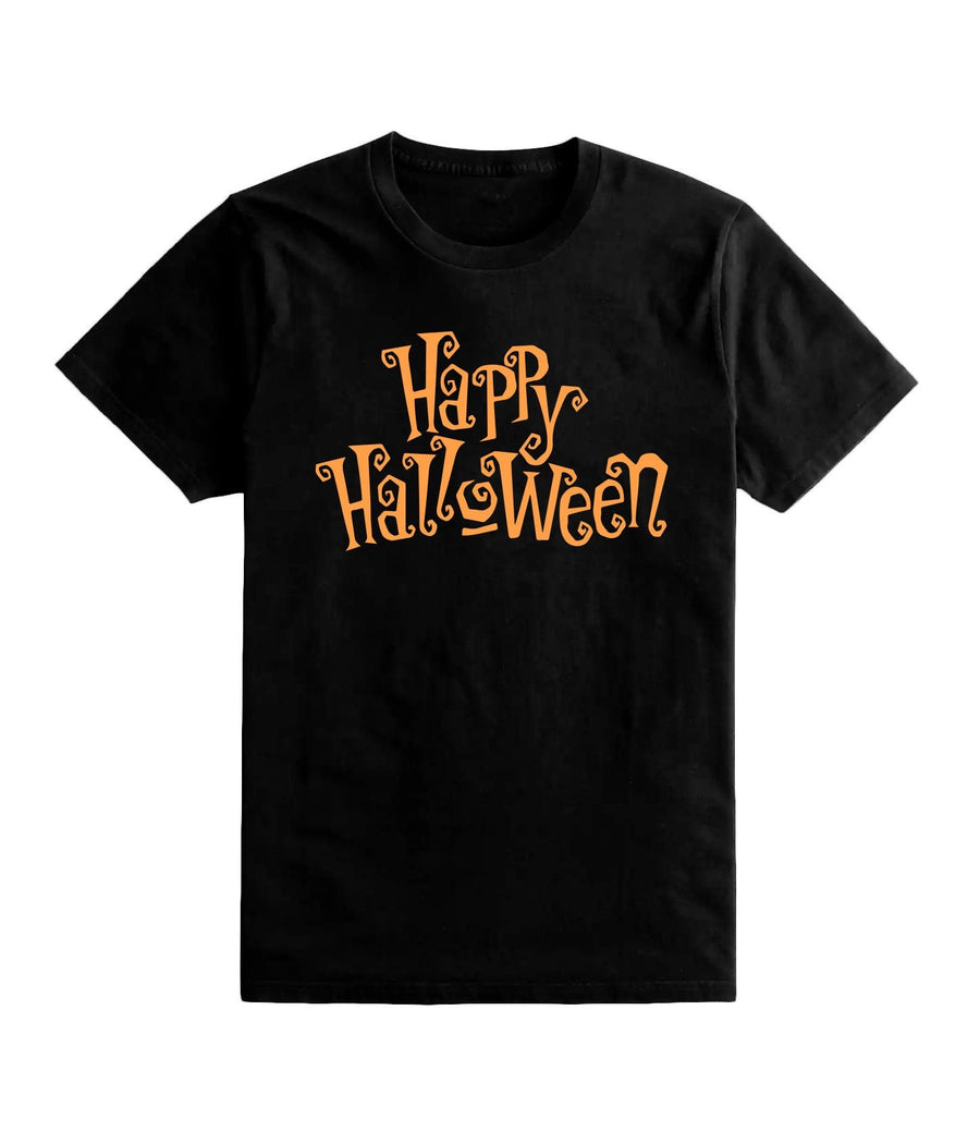 A comfortable high-quality classic Happy Halloween Graphic T-Shirt in soft cotton fabric (100% cotton).