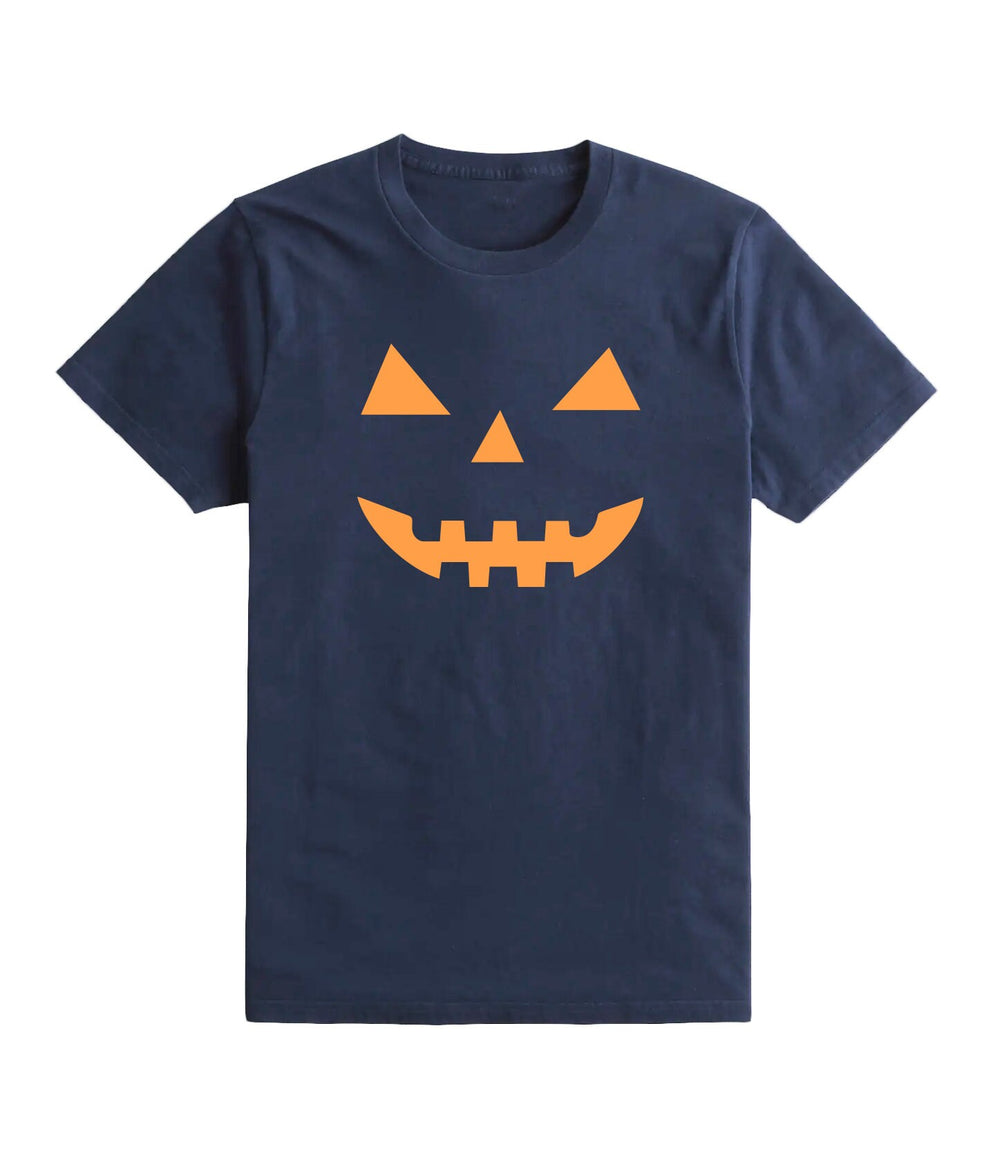 A comfortable high-quality classic Halloween Jack O'Lantern Pumpkin Smiley Graphic T-Shirt in soft cotton fabric (100% cotton).